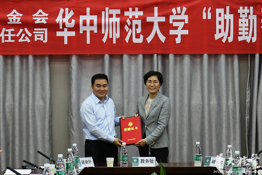 (通讯员:陈芳)5月4日下午,湖北省教育基金会、湖北中烟工业有限责任公司华中师范大学“助勤帮困”项目捐赠仪式在我校行政楼一楼会议室举行。湖北省教育厅副厅长张金元、教育厅高校学生处处长肖慎钢、湖北省教育基金会秘书长王建农、湖北中烟工业有限责任公司党组成员、纪检组长马超纯、湖北中烟工业有限责任公司办公室副主任笪友文、我校党委书记黄晓玫、副校长黄永林、党委副书记覃红等出席仪式,相关职能部门负责人、师生代表参会。覃红主持仪式。