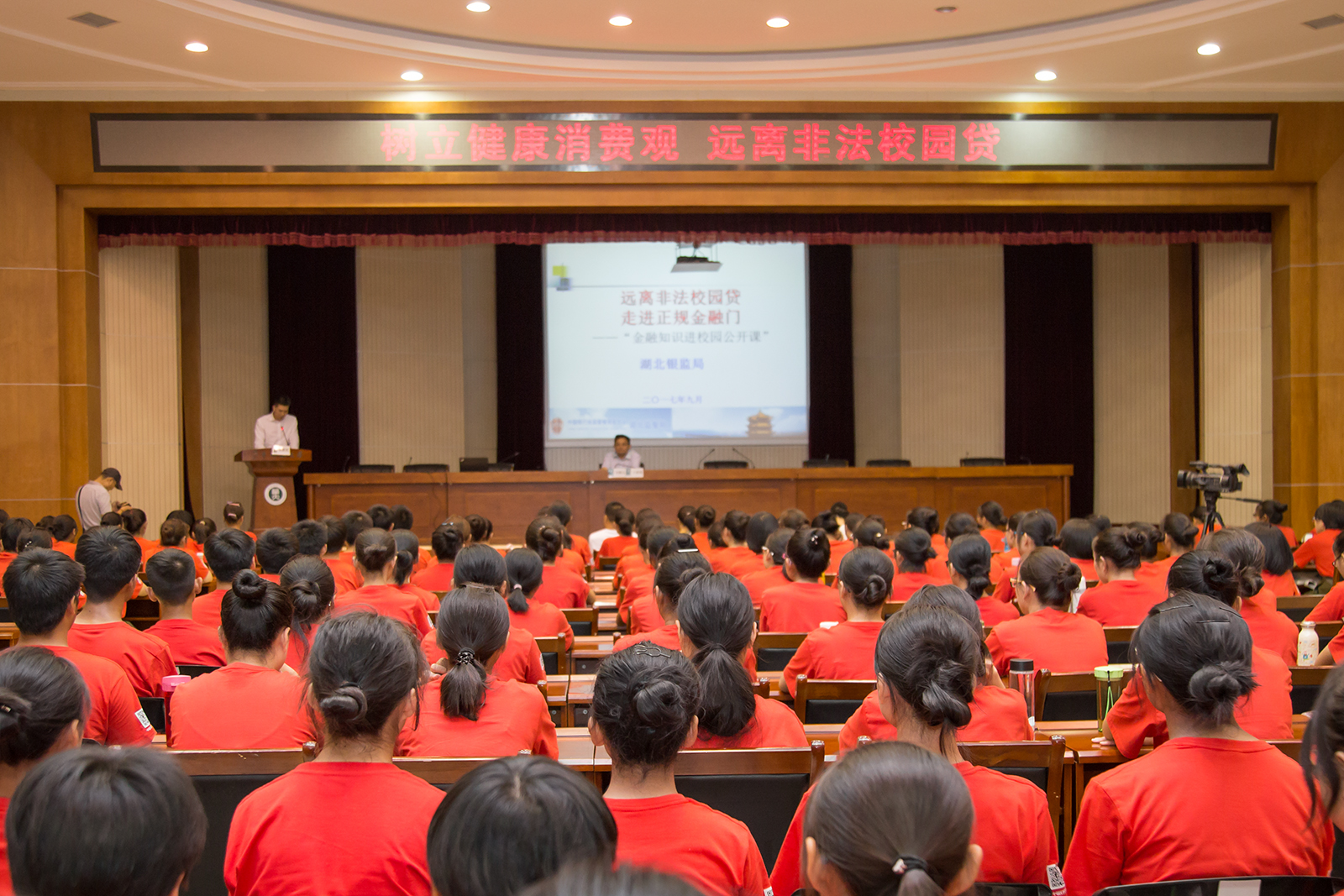 9月13日下午,湖北省大学生金融节金融知识进校园暨防范和打击“非法校园贷”主题宣传服务月金融知识讲座活动在我校科学会堂报告厅顺利举行。湖北银监局党委委员、副局长苏薪茗,中国银行湖北省分行副行长吴正娴,湖北银监局综合业务监管处主要负责人赵敏,我校副校长王恩科及相关职能部门的领导出席了活动,我校2017级三百余名学生代表参加了活动,活动由王恩科主持。
