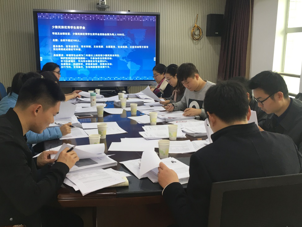 随后评审成员按照评分细则对少数民族优秀学生奖学金、逸华励志奖学金、桂苑书香励志奖学金等各项奖学金申请材料进行了严格审核,严谨细致地打出了分数。评定结果在综合各项评审指标后将于近日尽快公布。