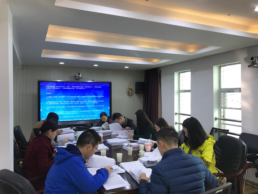沈老师就本年度集体奖学金申报材料的数量和类型向评审成员进行了介绍,使各位老师对于材料有了初步的了解,便于大家之后客观地开展评审工作。他详细地说明了集体奖学金的评选细则,并对老师们所提的问题进行了解答。他特别强调,集体奖学金的评审工作要宁缺毋滥,要对每一份上报的集体材料负责,将每一项评分细则落实到分数中去。对于挂科率、体质健康不合格率等硬性要求超标的申请材料,实行一票否决。
