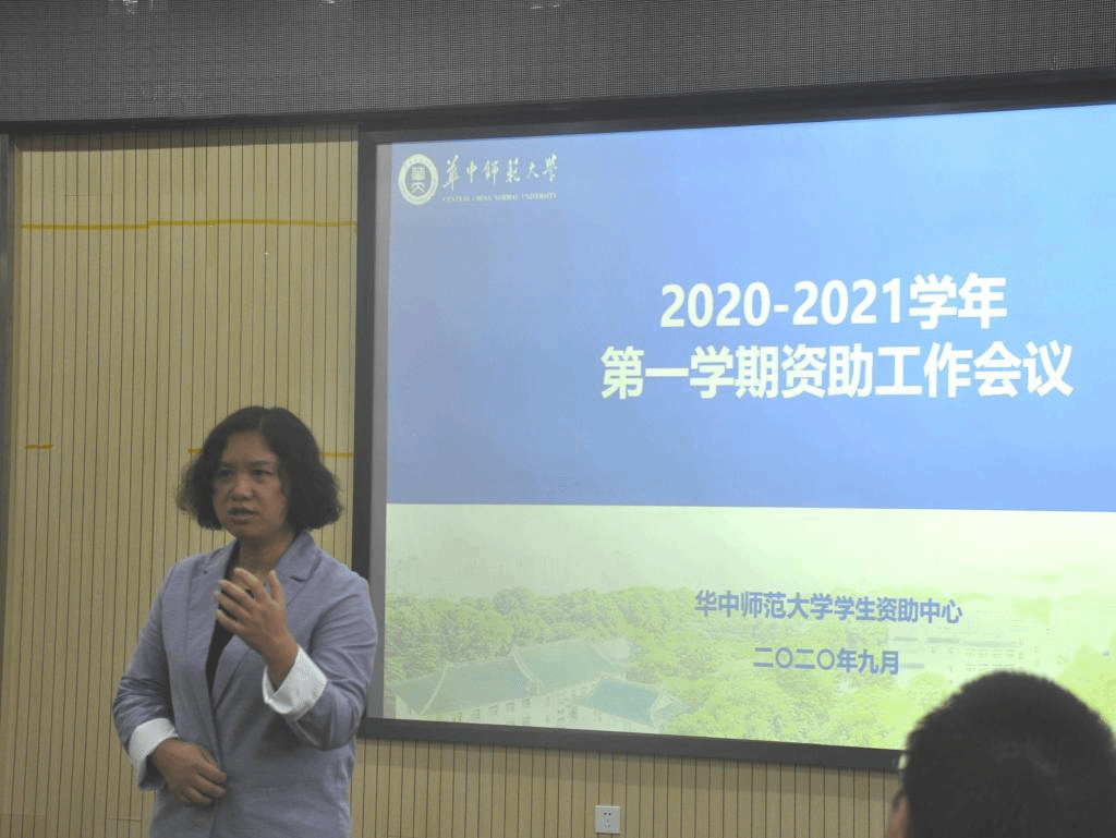 华中师范大学2020-2021学年第一学期资助工作专题会议于9月23日上午在行政楼二楼会议室召开。党委学生工作部副部长、学生资助中心主任吴建成出席了会议、各学院资助工作负责人以及学生资助中心成员参加了此次会议。会议由资助中心王贤磊老师主持。