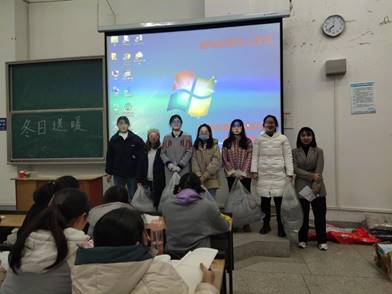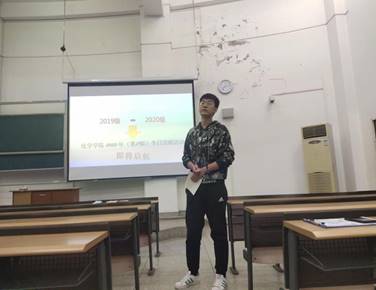 11月29日晚,“冬日送暖”活动在2020级晚点名现场开始,部分2019级团总支学生干部提前搬运物资前往9501教室。2019级团总支秘书长付艳颖首先发言,她指出,冬日送暖是化学学院的传统活动,希望能够让学弟学妹们感受化院的温暖,在2021级新生到来之时也能把这份爱传递下去。