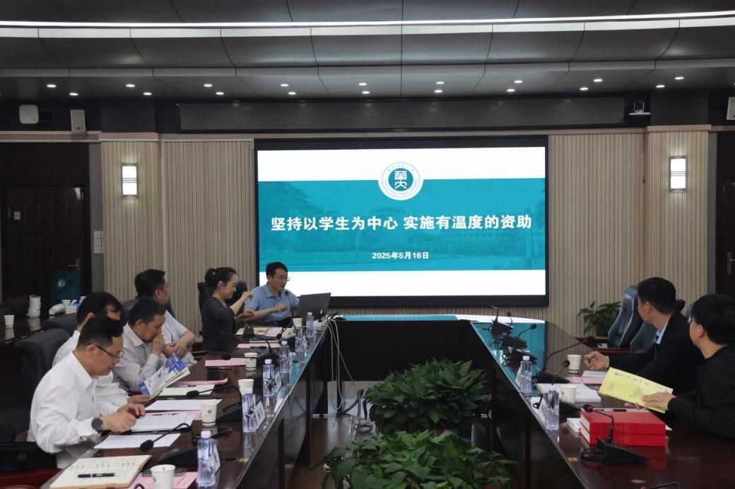 鲍新龙汇报了我校学生资助工作概况与特色。他介绍,学校坚持以学生为中心,以“基础性保障要稳,发展性支持要牢,应急性救助要快”为理念,通过构建“工字型”资助格局、锻造“服务型”育人队伍、探索“数智型”精准模式,拓展“资助+”辐射半径、营造“浸润型”育人氛围,实施“有温度的资助”,助力学生全面发展。